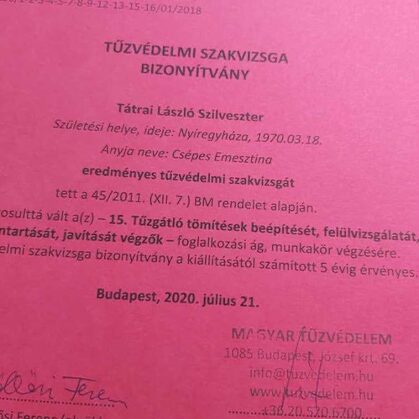 Tűzgátló tolókapu 90 perces 2,5 tonnás könnyű szerkezet -