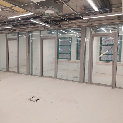 ilyen egészen kicsi üvegfal biztonsági edzett üveggel alu szerkezetben -